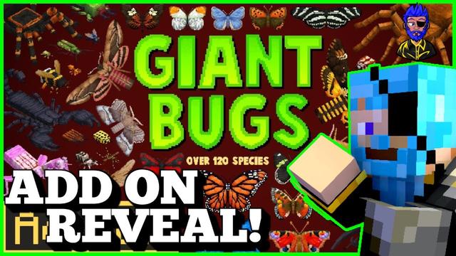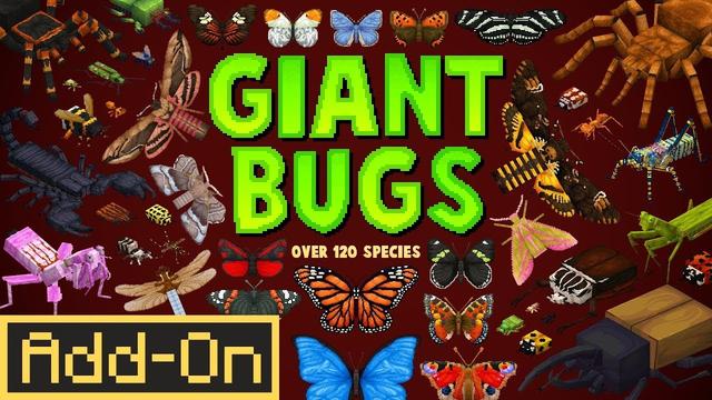 CompyCraft presents Giant Bugs Add-On: Giant Bugs brings more than 120 separate species of insect, arachnid, and more to the game... with a twist; they are all 1000 times their real size! Explore new creatures in different biomes, raise an arthropod army, craft items, explore insect nests, and more in the Giant Bugs Add-On! Use in any world, Tame & ride, Armour & items, Naturally generating structures.