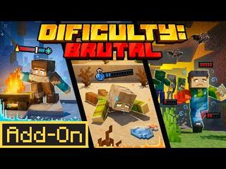 Difficulty: Brutal Add-On is a Minecraft Bedrock Marketplace Add-On (DLC) that can be purchased in Minecraft for 490 Minecoins. Difficulty: Brutal Add-On is not free to download, support the Minecraft Creator community by purchasing this Add-On in Minecraft Bedrock if you like what you see! 490 Minecoins are roughly equivalent to 2.57$ (USD) or 2.42€ (EURO). This value may vary depending on the currency and country. This information is without guarantee. This Add-On was created by Octovon and has been available since Tuesday, June 24, 2025. Difficulty: Brutal Add-On was last updated on Thursday, September 18, 2025 and is compatible with Minecraft Bedrock version 1.20.60 and newer versions.